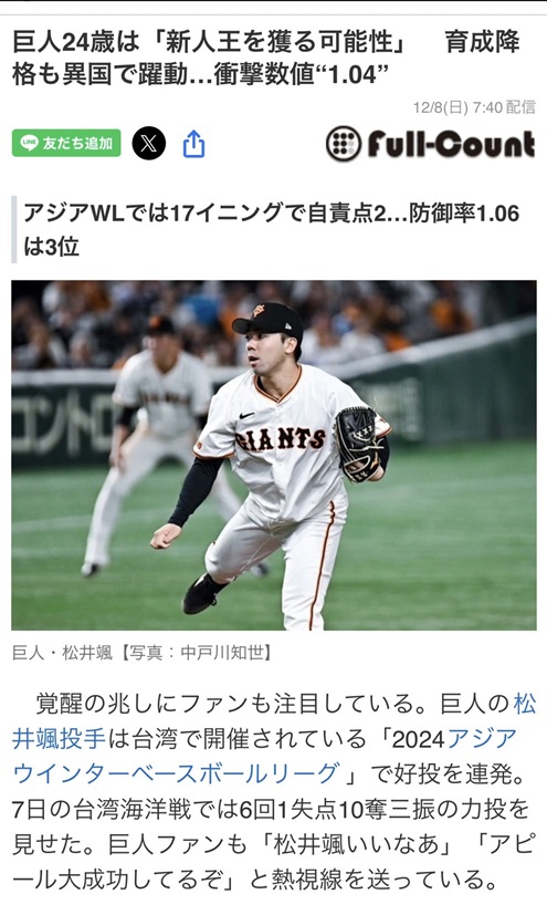 37期生、花咲徳栄高、明星大学卒業、2022プロ野球ドラフト会議でジャイアンツから育成1位で指名を受け入団。すぐに支配下契約となり背番号93となった。2023年の1軍成績は1勝1敗。2024再び、育成選手となったが、再起をかけて奮闘中である。(2024.12)