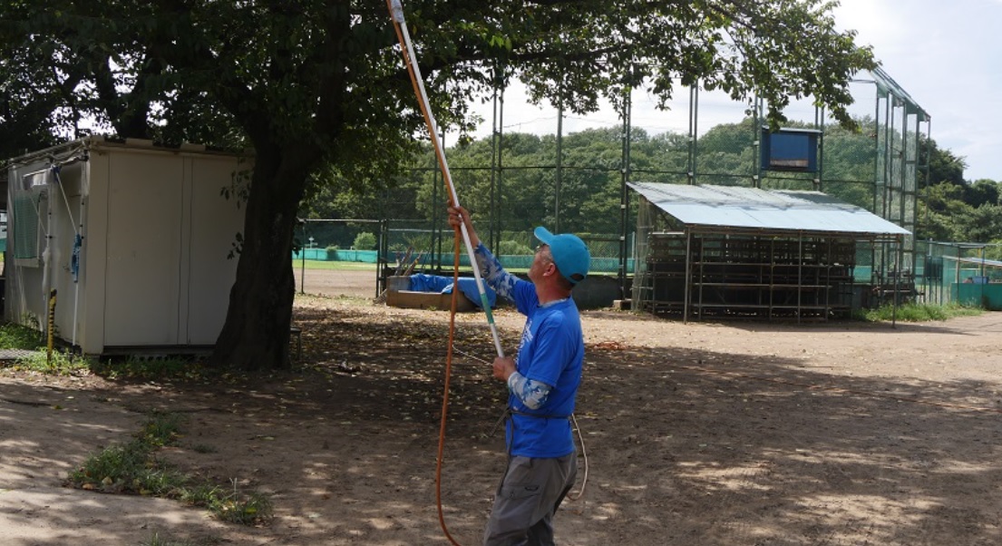 そんな毎年当たり前のように美しい花を咲かせる桜であるが、6-8月に害虫駆除を行っているのを意外と知られていない。グランドマネージャーの小寺さんだ。小寺さんは清瀬市で農業を営む傍ら、チームの運営に尽力頂いている。そうしたサポートがあることを私たちは決して忘れてはいけない。