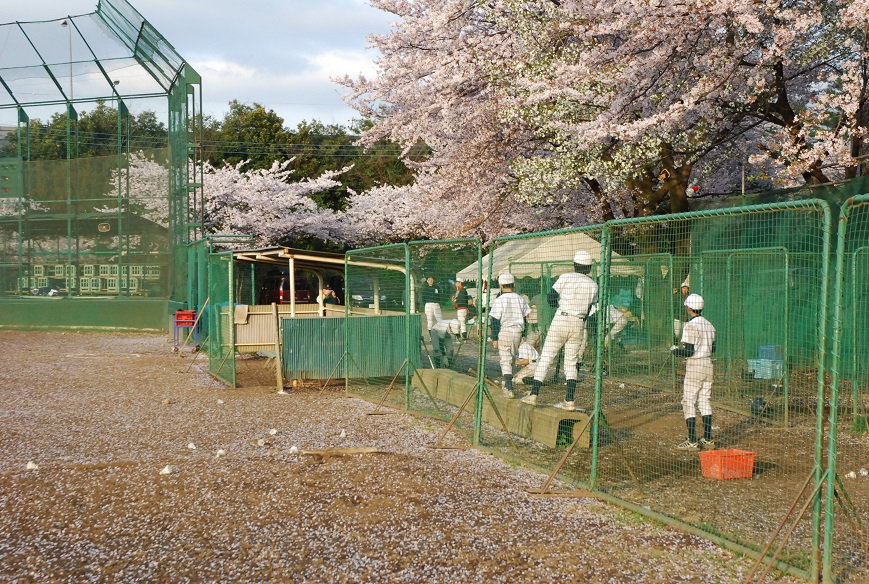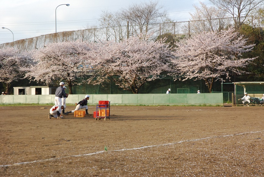 毎年、春に第二グランドの桜は私たちの目を楽しませてくれる。敷地内には大小20数本のソメイヨシノが植えられている。これほど桜の美しい野球場はそう多くないだろう。満開となる週の日曜日に入団式を兼ね歓迎会(お花見)が開催される。1年生は桜一色のグランドの中で夢と希望に満ち溢れるに違いない。